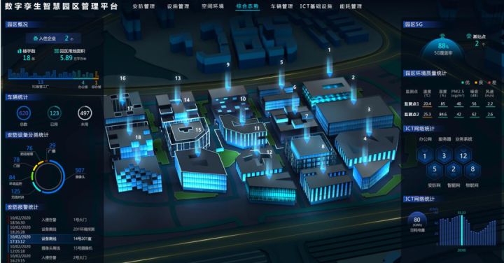 園區安防、設施、車輛、能耗等重要管理模塊被納入到數字孿生智慧園區管理平臺中,實現“一個平臺”就能了解園區態勢,有效提升園區監控和管理水平。